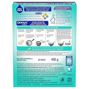 Dexolac Follow Up Infant Formula Milk Powder for Babies – Stage 4 (18 to 24 months) – with 36 Vital Nutrients – 400gms – BIB Pack